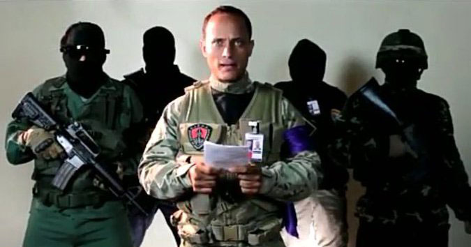 Dans le même temps, il a diffusé une série de vidéos sur son compte Instagram dans lesquelles il explique qu’il fait partie d’un réseau d’officiers dans les forces de sécurité et de l’armée, en lien avec des civils, qui demandent la destitution du président Maduro. Sur l’hélicoptère, il a déployé une banderole sur laquelle était écrit « 350 Libertad », en référence à l’article 350 de la Constitution bolivarienne qui autorise la désobéissance civile face à un régime ou une autorité qui bafoue les droits démocratiques ou humains. Il a été invoqué par l’opposition les jours précédents cette tentative de renverser le gouvernement.