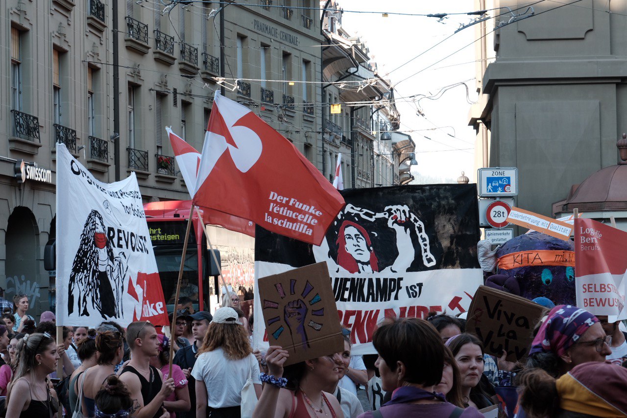 La conclusion: pour la Suisse, ce sont des chiffres historiques : en 2019, on comptait 500 000 femmes dans la rue, et mercredi dernier, 300 000. Cela prouve le potentiel de lutte active de la classe ouvrière en Suisse ! La direction féministe est à la traîne par rapport à ce potentiel. En tant que direction du mouvement, elle aurait dû montrer les prochaines étapes : 1) La crise du capitalisme signifie des attaques contre le niveau de vie de la classe ouvrière. Cela signifie des attaques contre les pensions, des mesures d’austérité, des hausses de prix, la dégradation des conditions de travail et un taux de chômage plus élevé. Cela touche encore une fois directement et particulièrement les femmes. 2) La classe ouvrière doit se battre elle-même pour défendre son niveau de vie, et encore plus pour obtenir des améliorations telles que des places de crèche bon marché ou gratuites. 3) Cette lutte ne peut être menée et gagnée que contre les patrons. La grève symbolique ne suffit pas. Le moyen le plus efficace est la grève dans l’entreprise, qui s’attaque directement aux profits des capitalistes. 4) Plus la grève est importante, plus elle est efficace : pour cela, il faut la plus grande unité possible de la classe ouvrière – au-delà des frontières de genre.
