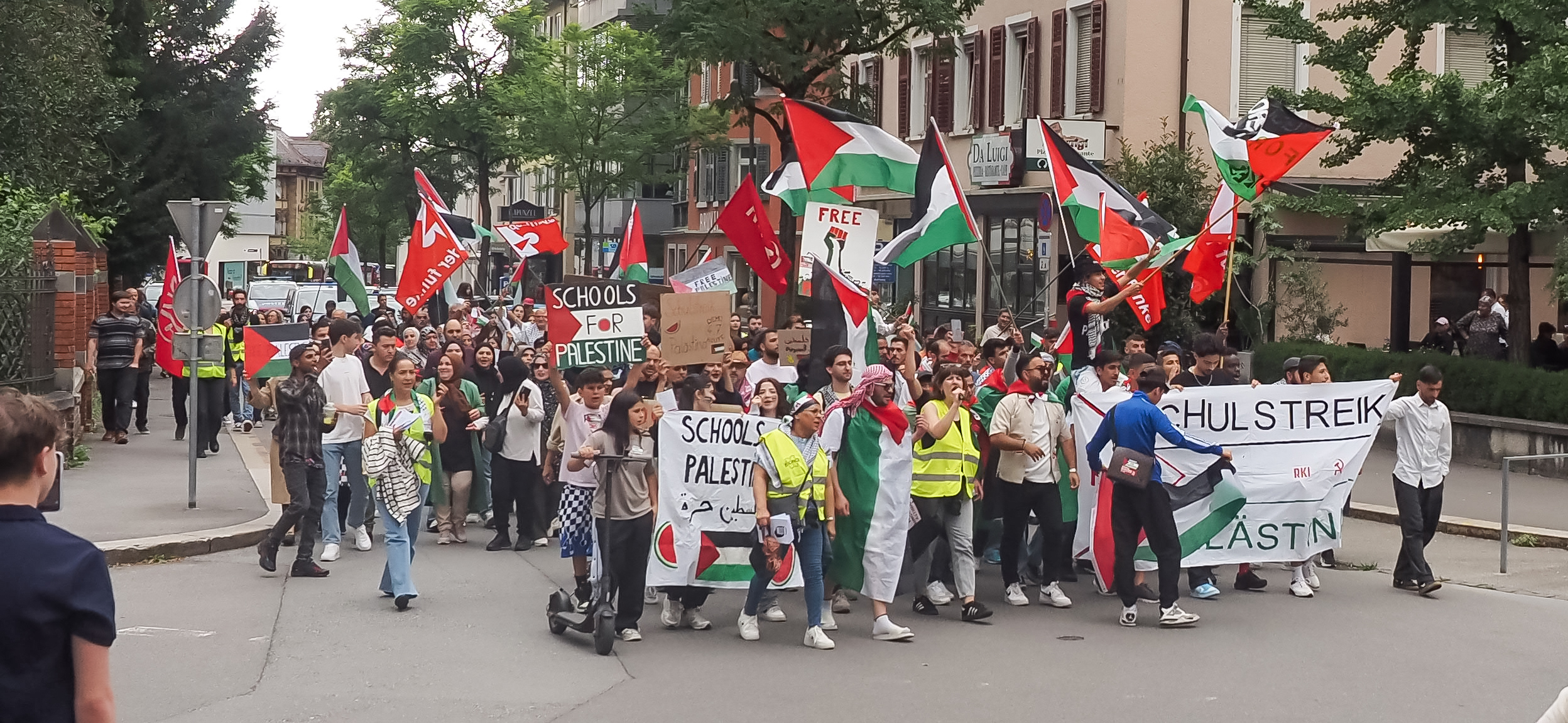 Ce qui se passe maintenant est une mise à nu massive de la démocratie bourgeoise. Israël, célébré pendant des années par les médias et les politiques suisses comme « la seule démocratie du Proche-Orient », viole le droit international au vu et au su de tous. En Suisse, le régime « démocratique » impose les intérêts d’une minuscule élite. Et là où des jeunes manifestent pacifiquement contre la guerre et le génocide, l’État intervient avec une répression impitoyable. La démocratie n’est garantie que tant que les intérêts de la classe dirigeante ne sont pas remis en question. En Suisse aussi, la démocratie tant vantée se révèle être la dictature des impérialistes.