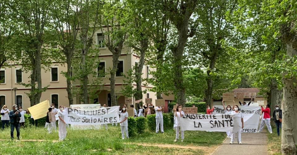 Aujourd’hui on lutte pour ça. Mais en même temps, c’est compliqué pour nous de s’opposer efficacement à la direction. En ce moment, on a deux rassemblements par semaines devant la direction pour manifester, mais on est un secteur où il est impossible de se mettre en grève. Même les consignes de « soin minimum aux patients » qui peuvent s’appliquer dans d’autres secteurs de la santé sont impossibles pour nous. C’est quoi le « soin minimum » en psychiatrie ?