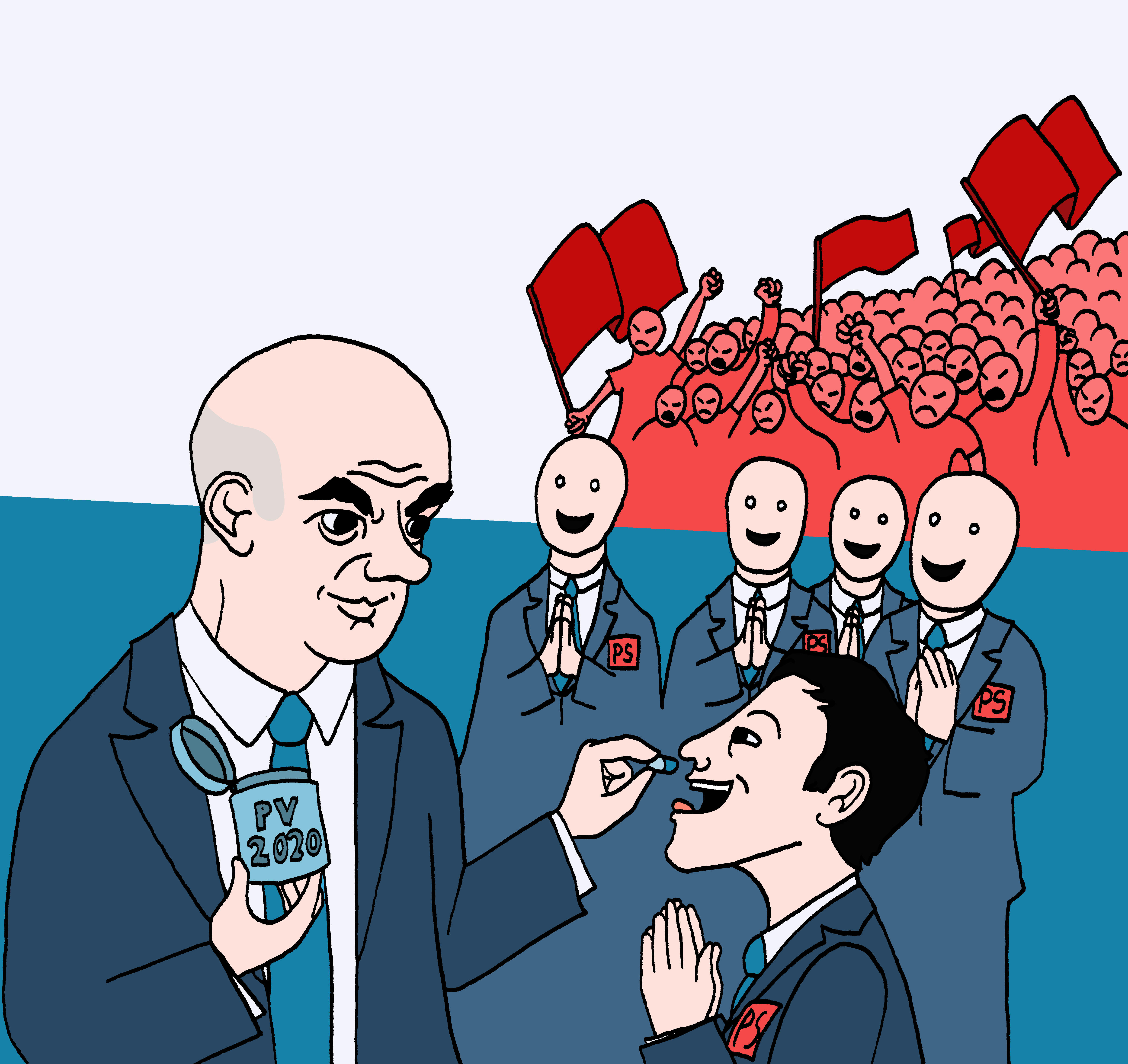 Le PS Suisse a dû même appeler à une consultation générale des membres pour se positionner sur cette question. Dans l’histoire du PS Suisse, la convocation générale n’a été utilisée que 2 fois : une fois pour décider de l’adhésion à la troisième internationale, la deuxième pour une révision de l’AVS portée par la conseillère fédérale Ruth Dreifuss dans laquelle l’âge de la retraite des femmes était relevé de 62 à 64 ans. Plutôt qu’une démonstration du caractère « démocratique » de cette organisation (il suffit de regarder le non-respect régulier des décisions de la base par ces parlementaires), au contraire, cette convocation générale souligne la faiblesse des directions sociales-démocrates. Elles nécessitent une légitimation « démocratique » pour paraître encore crédibles.