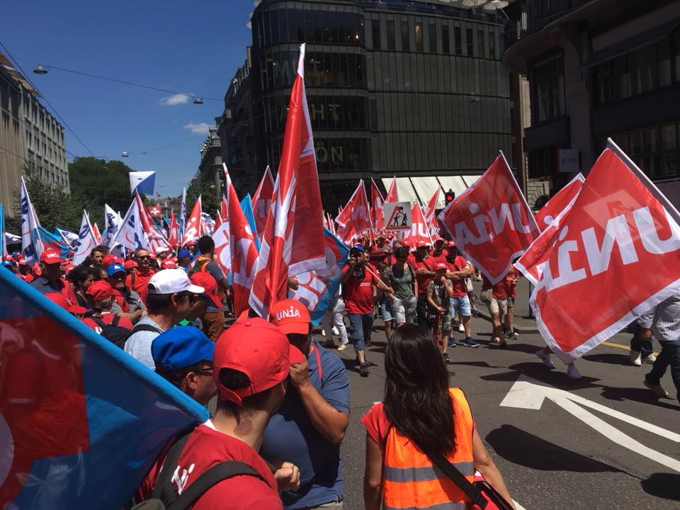 L’initiative du salaire minimum est devenue la pierre de touche de la gauche. Le projet combattif ne suivait plus la voie du partenariat social. Les luttes, politiques et générales (pour les lois), étaient liées à des revendications matérielles (salaires) qui auraient apporté des améliorations tangibles. Avec l’initiative 1:12 de la JS, l’optimisme s’est répandu. Enfin, la gauche reprenait l’offensive, quoique pour une courte période. Le renouvellement a été poignardé dans le dos peu après la collecte des signatures : les politiciens socialistes de l’exécutif se sont opposés à ces initiatives. A l’automne 2013, l’initiative de la JS obtenait malgré tout un bon tiers des voix. Mais la victoire de l’initiative contre l’immigration de masse de l’UDC en février 2014 a brisé toute assurance. Et après une campagne nationaliste de gauche, le résultat n’a pas été surprenant : pas même un quart de la population n’a voté pour le salaire minimum. Sans perspective, le syndicat de gauche manque d’orientation et perd toute la confiance de la classe ouvrière.
