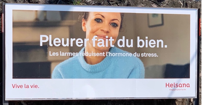 Impossible de ne pas les avoir vues. Depuis plusieurs semaines, les affiches publicitaires pour l’assurance-maladie Helsana sont partout. On peut y lire en caractères énormes que «pleurer fait du bien», ou que «le rire renforce». À choisir une émotion, c’est plutôt la colère que ces affiches inspirent.