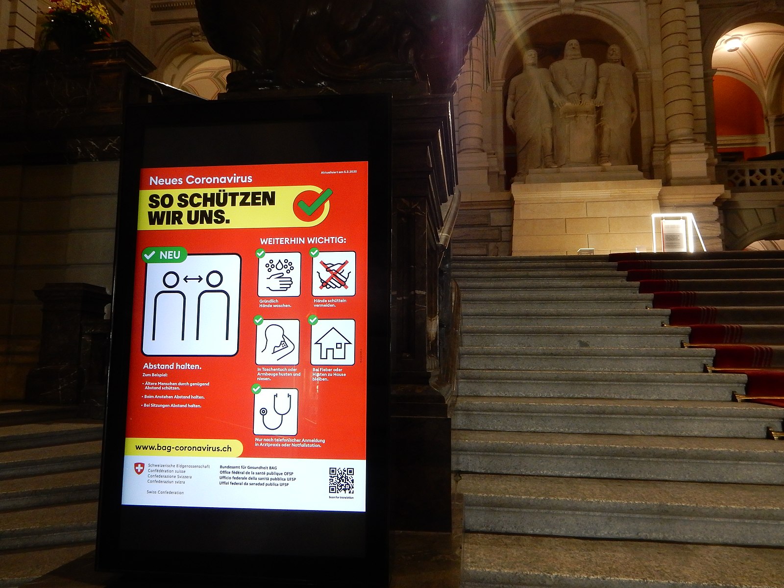 Les premières mesures annoncées ont été les mesures sanitaires, par le conseiller Berset. En substance, le Conseil fédéral continue dans sa stratégie : maintenir la production en route coûte que coûte. En effet, la mesure en elle-même est de faire respecter, par la répression, l’interdiction de se réunir dans l’espace public. Ainsi, la police pourra amender les groupes de plus de 5 personnes dans l’espace public. Pourtant, dans un domaine spécifique, les groupes de plus de 5 personnes sans mesure de distanciation sont encore, de facto, autorisés : les entreprises et les chantiers, qui continueront à tourner.