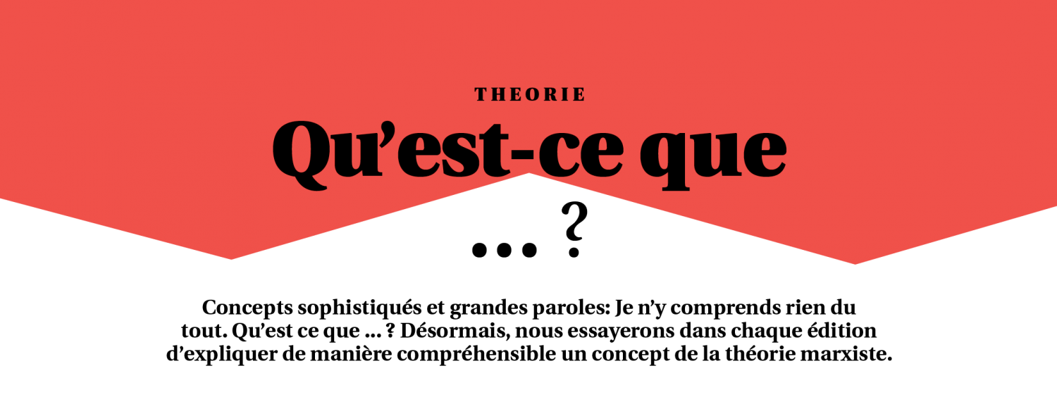 Concepts sophistiqués et grandes paroles: Je n’y comprends rien du tout. Qu’est ce que … ? Désormais, nous essayerons dans chaque édition d’expliquer de manière compréhensible un concept de la théorie marxiste.