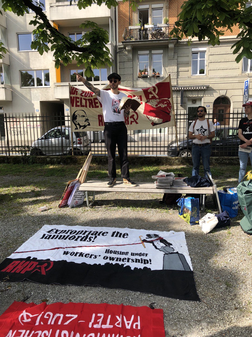 Déjà sur l’Helvetiaplatz, j’ai trouvé le premier communiste. C’est un jeune travailleur social, membre du PdT. Il m’a dit : « Les manifs ne suffisent pas, il faut s’organiser ». Il n’est pas très actif au sein du PdT, car « ils ne viennent pas me chercher ». Le problème de la gauche, c’est aussi le combat culturel : « Ce sont des combats fictifs ». Nous avons longuement discuté de son travail avec les réfugiés, qui regorge d’hypocrisie : « J’ai deux visages : ce que je dois dire et ce que je pense vraiment ». Il donne certes tout pour ces personnes, se surmène, mais au final, il s’agit de lutter contre les symptômes. Mais pourquoi le PCR est-il son plus grand levier ? Nous avons discuté du réformisme du PS et du PdT et de la nécessité de dire la vérité aux travailleurs sur le capitalisme, la crise et l’Etat. « Les travailleurs ne sont pas pris au sérieux », a-t-il dit. « La théorie ne doit pas être déconnectée de la pratique ». J’ai expliqué que nous, les communistes, devions être des tribuns populaires. Il a acheté un journal et en a pris deux autres : il savait déjà à qui il pouvait les donner. Et il m’accompagnerait tout de suite pour trouver d’autres communistes. Moins de deux minutes plus tard, nous avons rencontré un jeune ouvrier : « Je me suis radicalisé récemment. J’ai découvert Lénine par des podcasts ». « J’ai dû me former d’abord. Mais aujourd’hui, je suis ici parce que je cherche une organisation qui me corresponde ». Malheureusement, il a dû partir, mais a acheté un journal et nous avons convenu par téléphone de discuter de son adhésion et du congrès fondateur. L’assistant social devait lui aussi aller travailler. Plus tard, il m’a écrit : « Après le travail, j’étudierai le manifeste en profondeur. Je suis très intéressé ! »